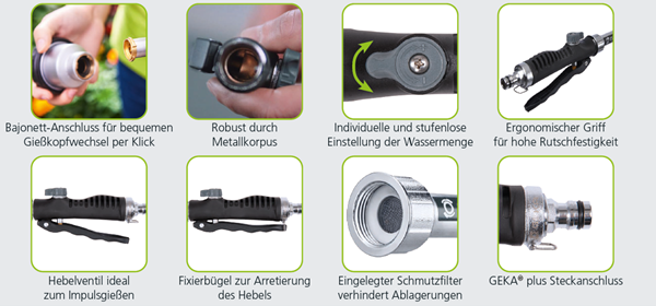 Mobile Preview: GEKA Gießgerät Easy Rain 35° -- Typ:  20cm Rohrlänge mit Steckanschluss, Hebelventil, Gießkopf
