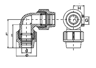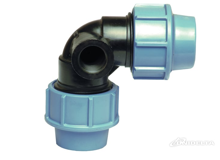 PP 32 x 32 x ½" Winkel 90° mit seitlichem Innengewindeabgang