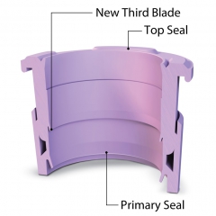 Multifunktionale Abstreifdichtung; die formschlüssige Abdichtung verhindert einen zu hohen Durchfluss, sodass mehr Düsen am gleichen Ventil montiert werden können.